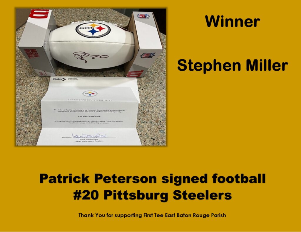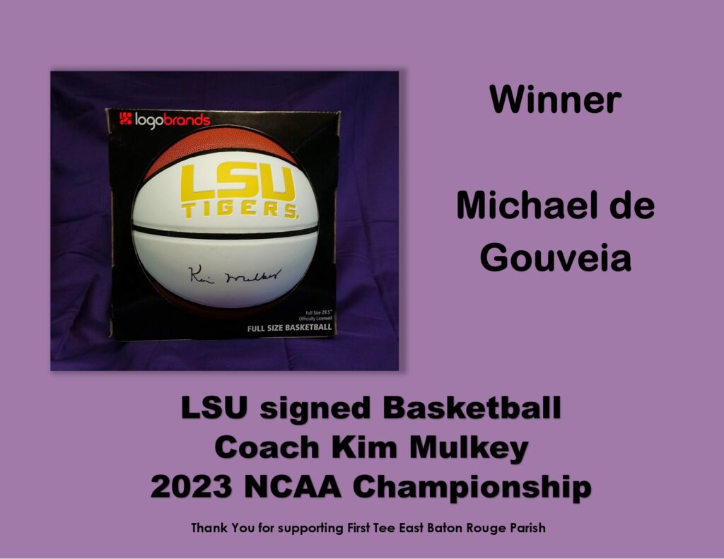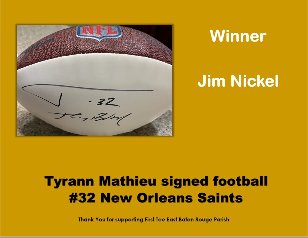 With our mission in mind to help First Tee East Baton Rouge Parish raise more funds to continue and grow local Collegiate Scholarships and Financial Aid, we are proud to announce that we will be having a contest to raffle off multiple signed items from current and former players and coaches with LSU and NFL ties. To participate, in the raffle